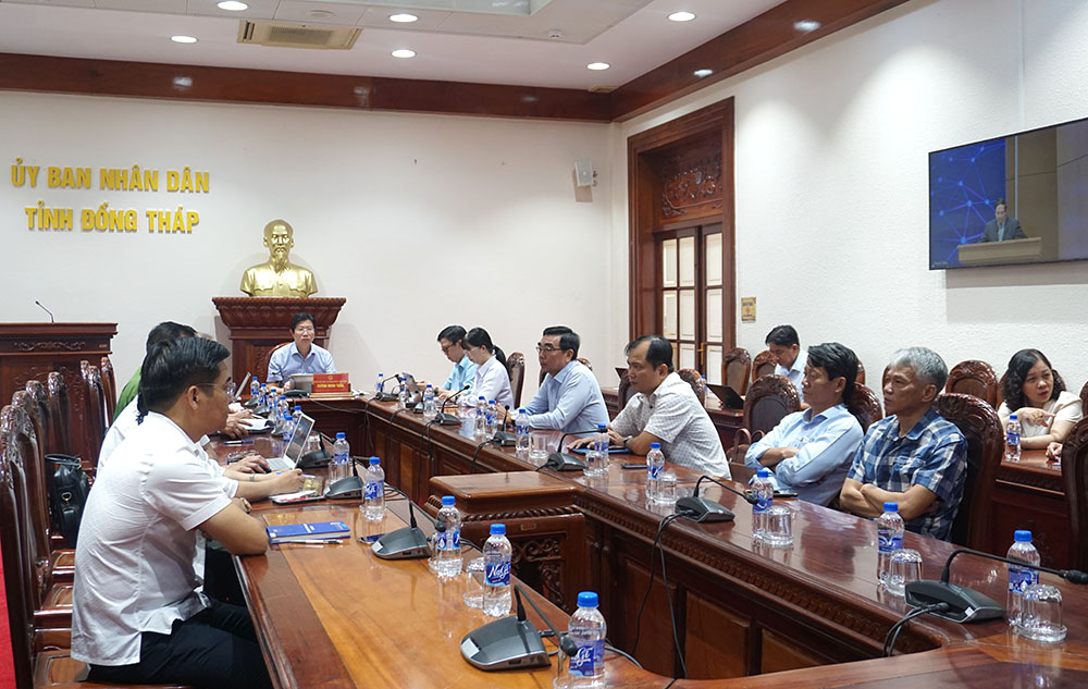 Phó Chủ tịch Ủy ban nhân dân tỉnh Huỳnh Minh Tuấn chủ trì tại điểm cầu tỉnh Đồng Tháp, cùng đại diện lãnh đạo các Sở, ngành của tỉnh tham dự