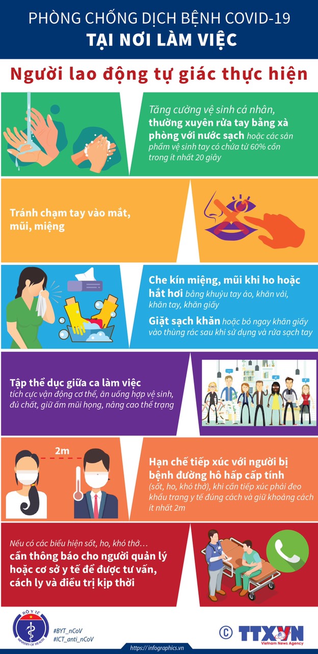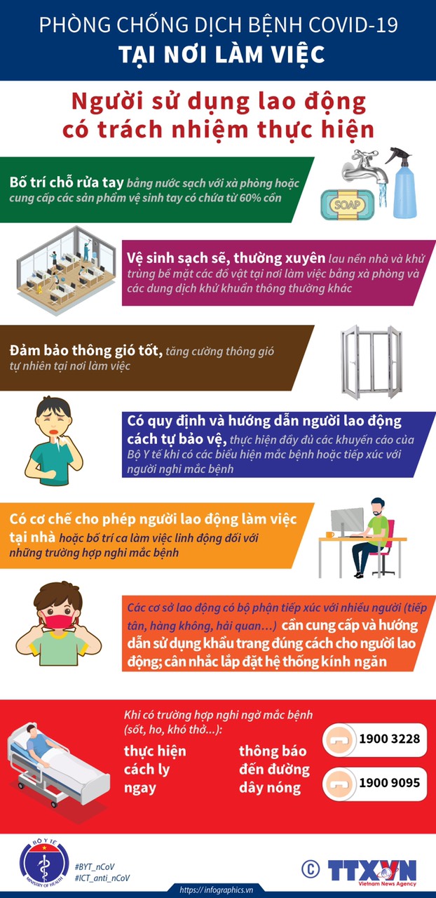 Bộ Y tế Khuyến cáo phòng chống dịch bệnh COVID-19 tại nơi làm việc.