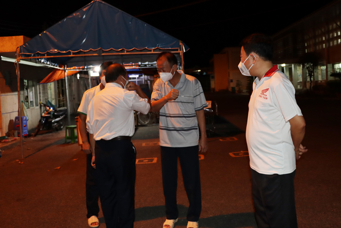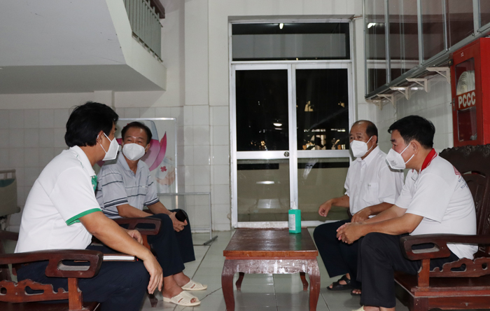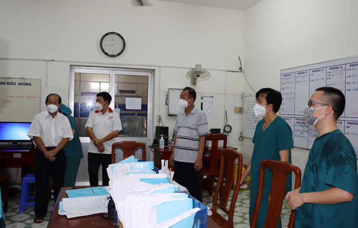 Ông Đoàn Tấn Bửu đến thăm các bác sĩ, điều dưỡng trực tại phòng hành chính