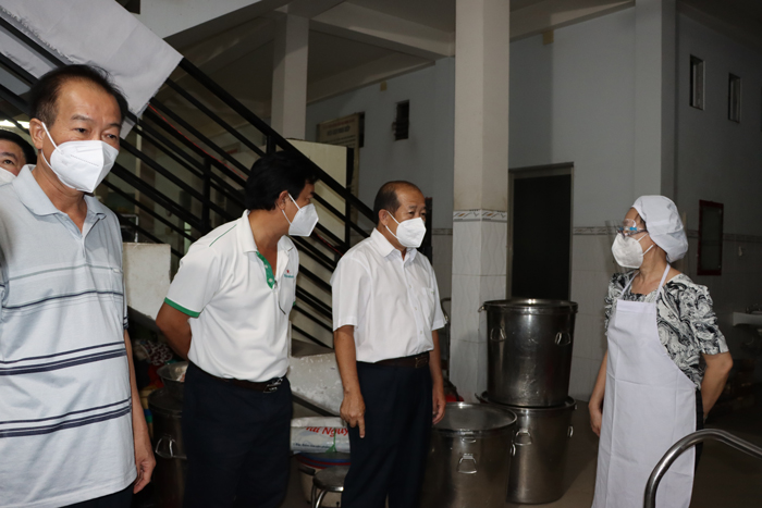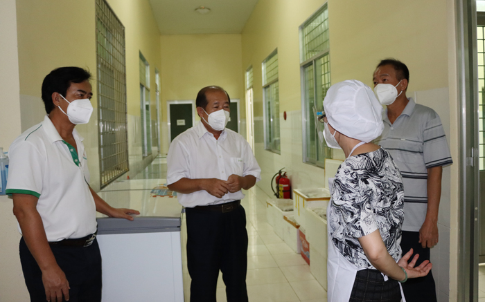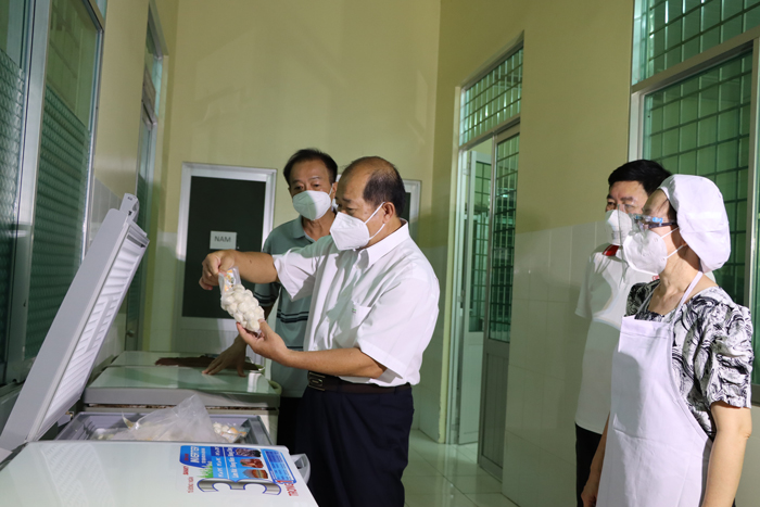Phó Chủ tịch Uỷ ban nhân dân tỉnh Đoàn Tấn Bửu chia sẻ khó khăn và động viên các lực lượng hoàn thành tốt nhiệm vụ, cung cấp những suất ăn dinh dưỡng, hợp vệ sinh cho đội ngũ y, bác sĩ cũng như bệnh nhân trong bệnh viện