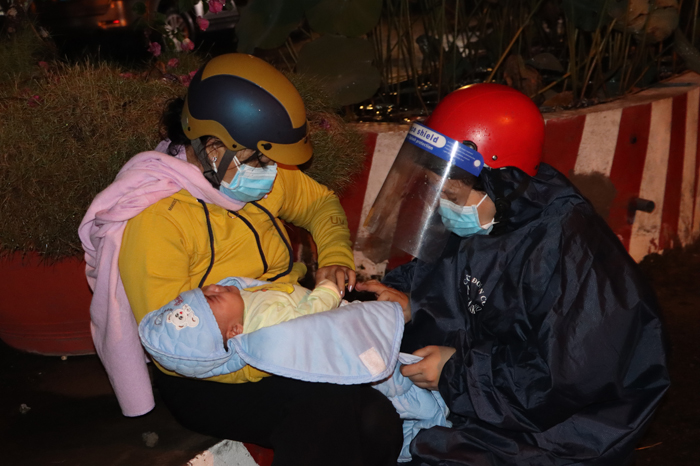 Trong số hàng chục ngàn người tự phát di chuyển về địa phương, có rất nhiều phụ nữ mang thai và có con nhỏ.