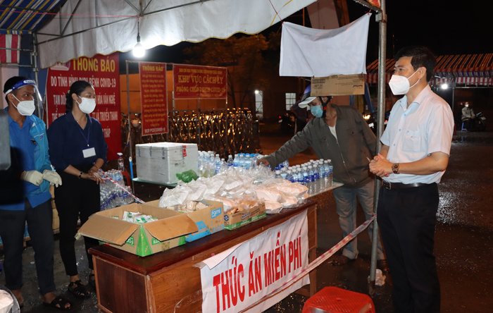 Sau các cuộc họp giải quyết công việc, ông Phạm Thiện Nghĩa đều tranh thủ thời gian bất kể ngày đêm, nắng mưa đến các chốt kiểm soát liên tỉnh để chỉ đạo công tác tiếp nhận bà con chu đáo, an toàn.