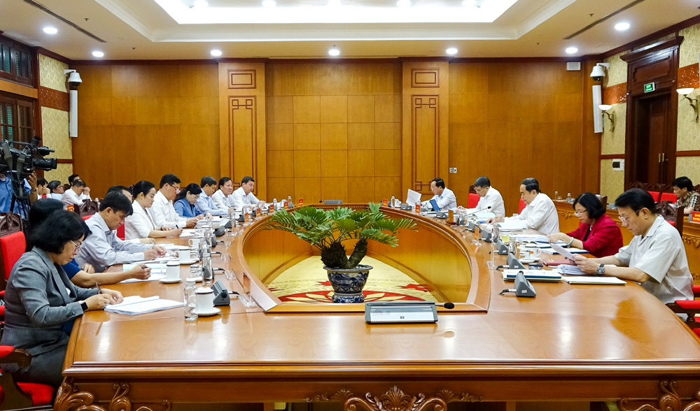 The Standing Committee of the Dong Thap Provincial Party Committee continued to listen and absorb the opinions of the Central Committee. Politburo member, National Assembly Chairman Tran Thanh Man emphasized that Dong Thap needs to promote the advantages of its new space, having both a border and a sea. In particular, focus on developing marine economy, high-tech agriculture, associated with agricultural product processing, export, and developing unique garden, riverine, and ornamental flower tourism in Sa Dec. Dong Thap also needs to shorten the time to complete digital infrastructure; ensure order, security, and border safety.