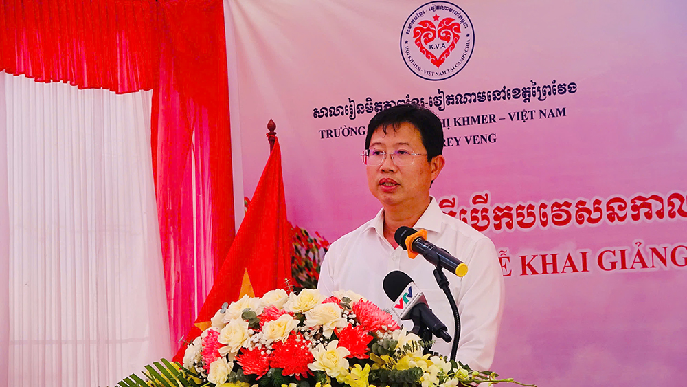 Mr. Huynh Minh Tuan, Vice Chairman of the Provincial People's Committee, congratulated the teachers and students on starting the new academic year in a joyful atmosphere. Mr. Huynh Minh Tuan likened the school to a "bridge of knowledge" connecting the two nations; at the same time, he hoped that the teachers would continue to nurture their passion for the profession so that students can study well and contribute to strengthening the Viet Nam - Cambodia friendship.