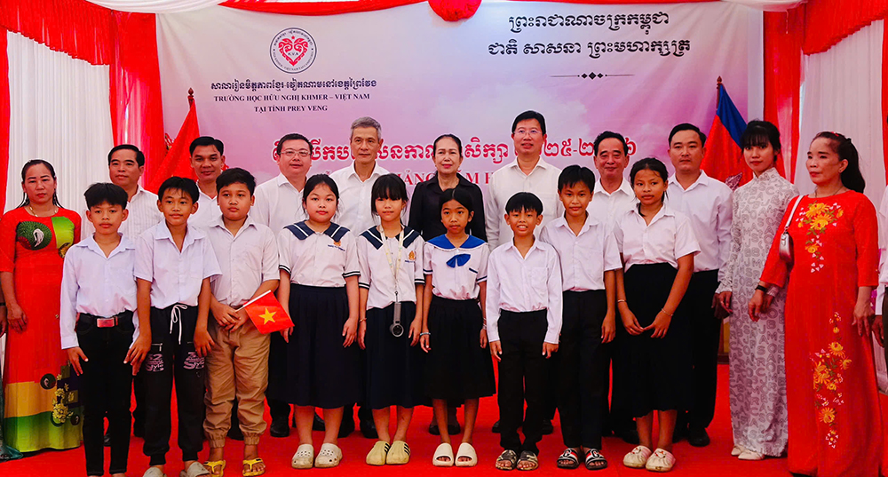 In the academic year 2025 – 2026, the Khmer – Viet Nam Friendship Primary School in Prey Veng province has over 200 students, most of whom are children of Vietnamese origin who receive free education in both Vietnamese and Khmer. This school was built with support from Dong Thap province.