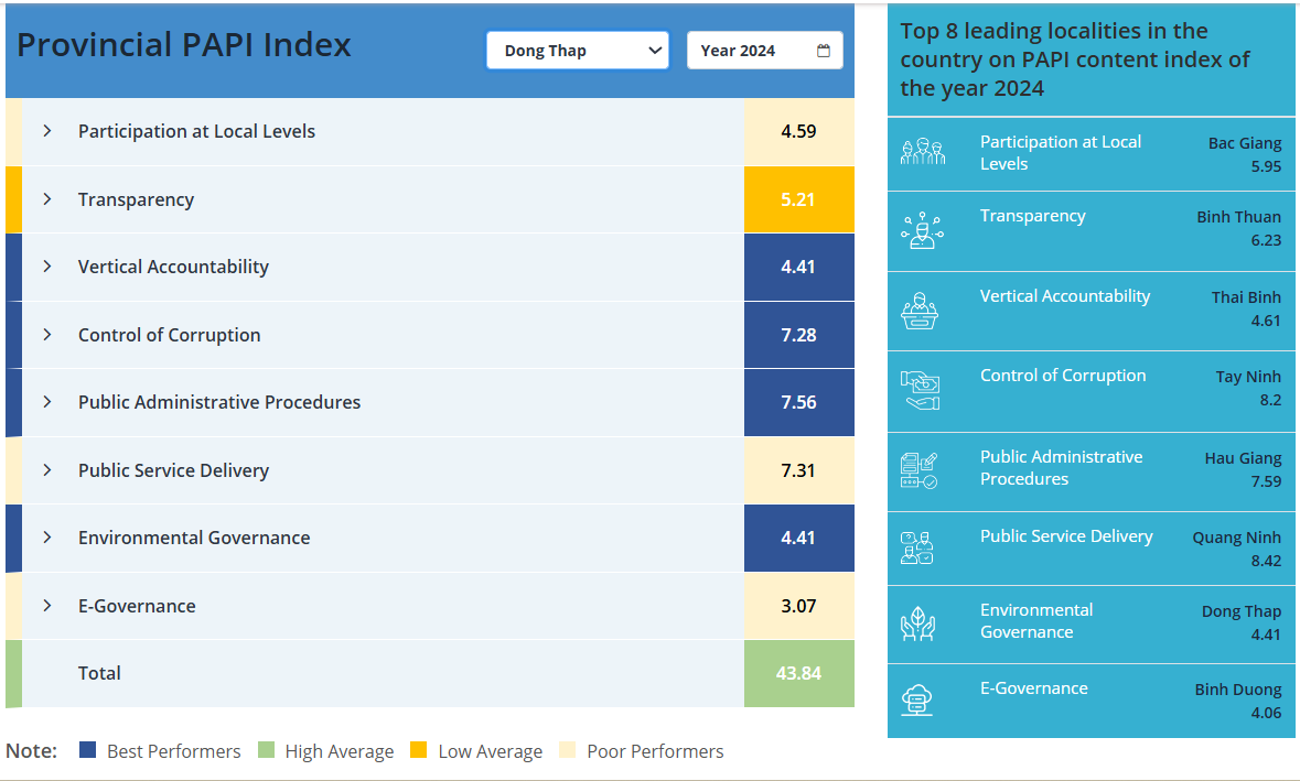 According to PAPI experts, the 5 content indicators: “Participation of people at the grassroots level, Transparency in decision-making at the local level, Accountability to the people, Environmental governance, and E-governance” still have significant room for innovation and improvement.