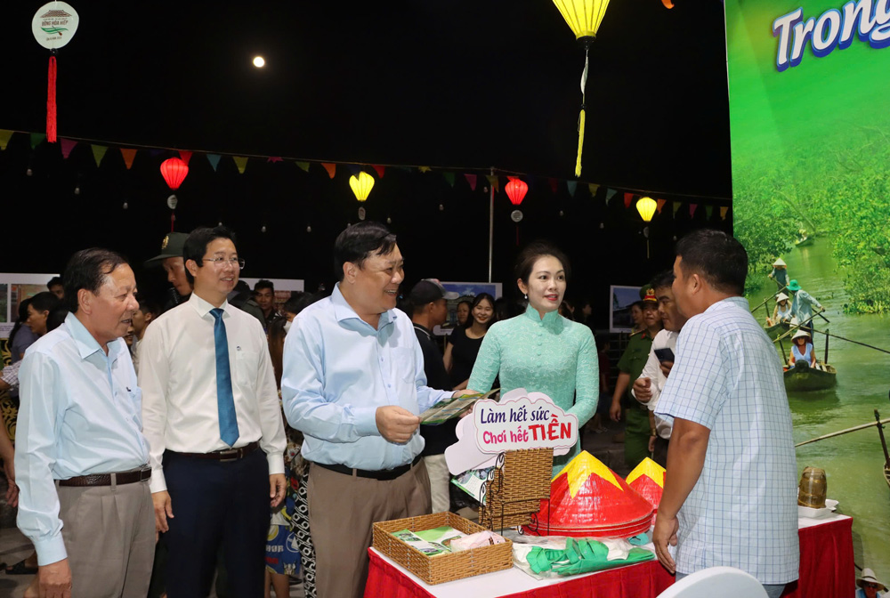 Điểm mới của lễ hội năm nay đó là có các gian hàng trưng bày, triển lãm và nhiều hoạt động trải nghiệm. Lãnh đạo tỉnh tham quan các gian hàng trưng bày, giới thiệu sản phẩm đặc trưng của địa phương tại lễ hội