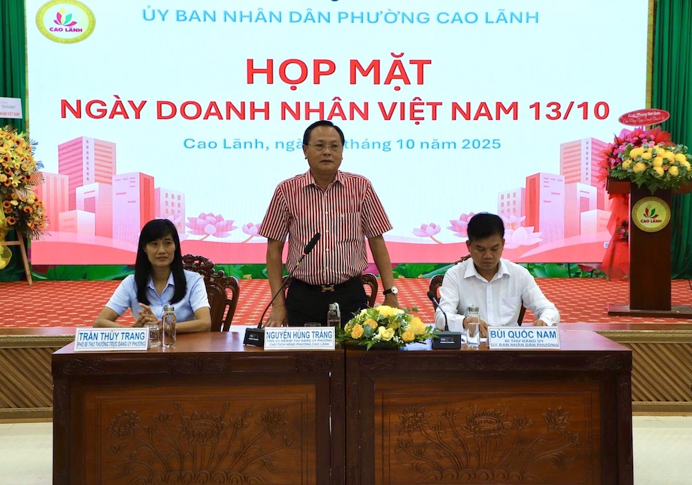 Chiều ngày 13/10, Đảng ủy, Ủy ban nhân dân phường Cao Lãnh tổ chức Họp mặt kỷ niệm Ngày Doanh nhân Việt Nam 13/10. Tham dự buổi họp mặt có lãnh đạo Hiệp hội Doanh nghiệp tỉnh Đồng Tháp, Hội nữ Doanh nhân Đồng Tháp; lãnh đạo Đảng ủy, Hội đồng nhân dân, Ủy ban nhân dân phường Cao Lãnh cùng hơn 80 doanh nhân, doanh nghiệp, đại diện các Hội quán, Hợp tác xã trong tỉnh.
