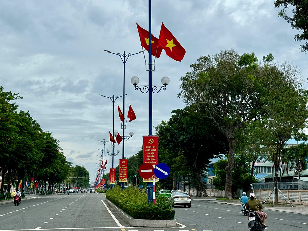 Các tuyến đường Rạch Gầm, 30/4, Yersin treo cờ Tổ quốc, cờ Đảng chào mừng Đại hội