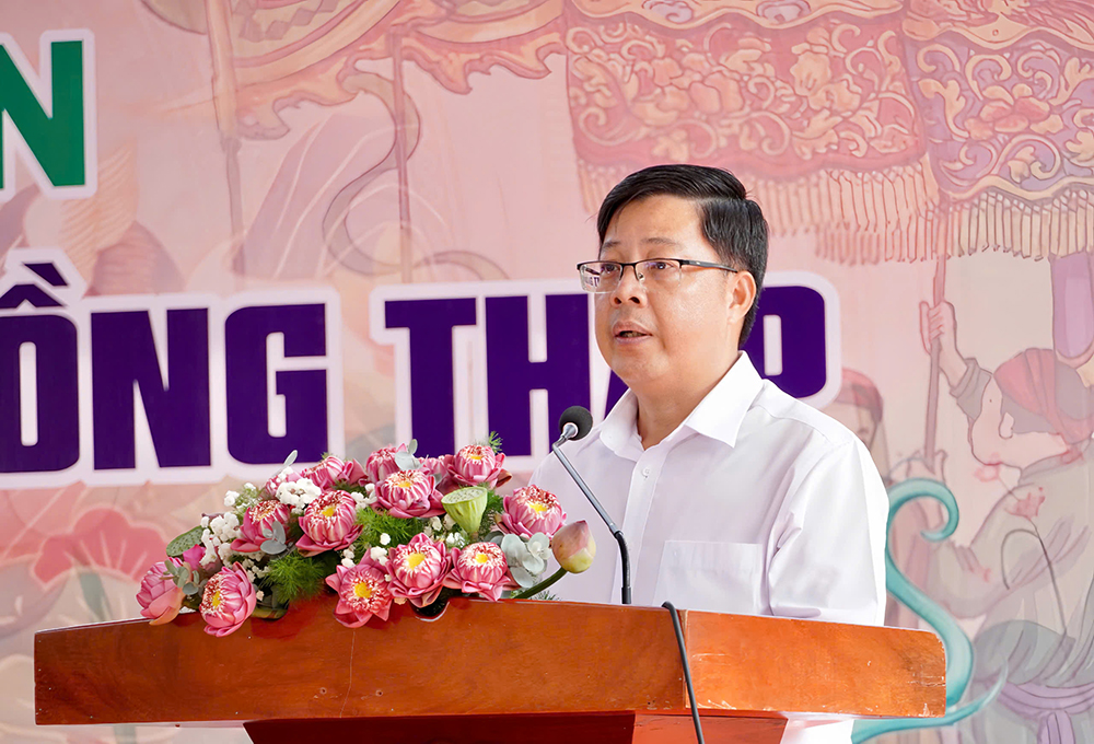 Phó Chủ tịch Hội đồng nhân dân tỉnh Trần Thanh Nguyên phát biểu tại buổi họp mặt