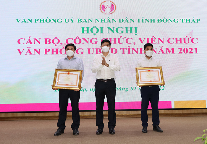 trao bằng khen cho viên chức Cổng Thông tin điện tử Đồng Tháp (bìa phải)