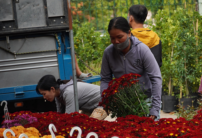 Người bán cần mẫn chắt chiu từng giỏ hoa, tỉ mỉ chăm chút với mong muốn hoa luôn tươi đẹp để sớm tìm được người mua. Điều này cũng đồng nghĩa với việc các tiểu thương sẽ sớm trở về gia đình mình để chuẩn bị đón Tết