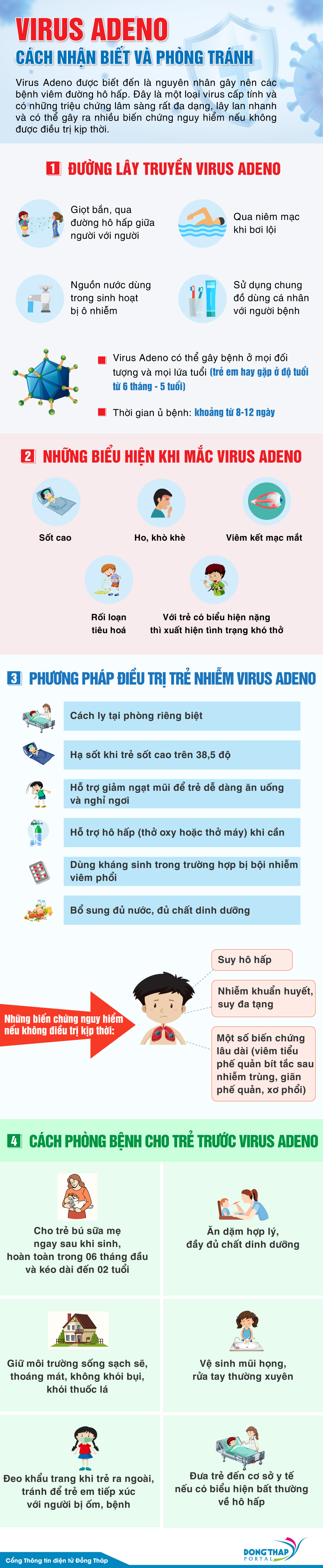 Đến nay, Đồng Tháp chưa ghi nhận trường hợp mắc bệnh do virus Adeno, tuy nhiên, công tác phòng tránh không vì thế mà chủ quan, lơ là. Sau đây là cách nhận biết và một số biện pháp phòng tránh bệnh do virus Adeno.