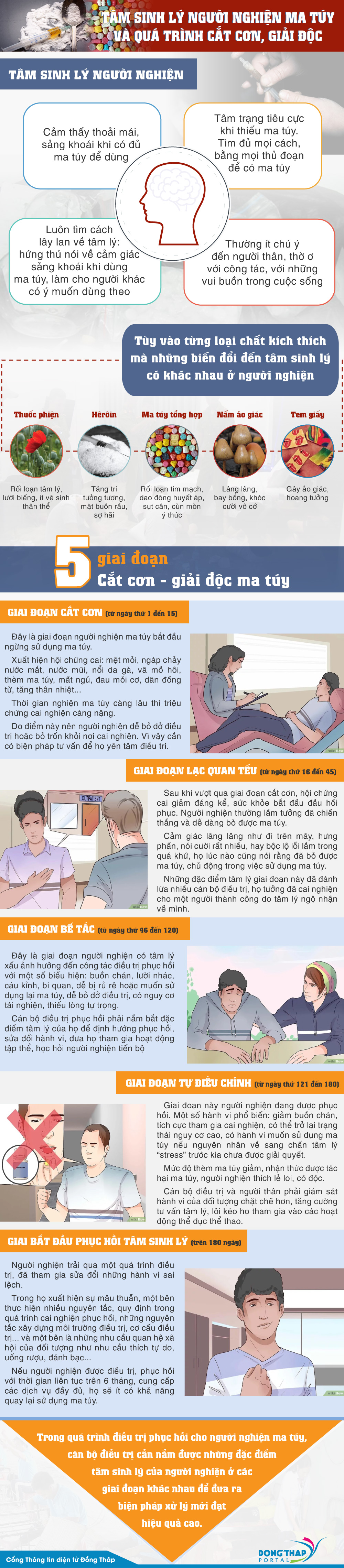 Nắm vững “Đặc điểm tâm sinh lý và kỹ năng tiếp cận với người nghiện ma túy” là một công việc rất cần thiết nhằm trang bị cho lãnh đạo, y bác sĩ, chuyên viên tâm lý và xã hội cũng như các cá nhân phụ trách và mọi người dân khi tiếp cận hoặc làm công tác cai nghiện ma túy tại các cơ sở cai nghiện, tại gia đình và cộng đồng. Mời xem chi tiết qua Infographic dưới đây.