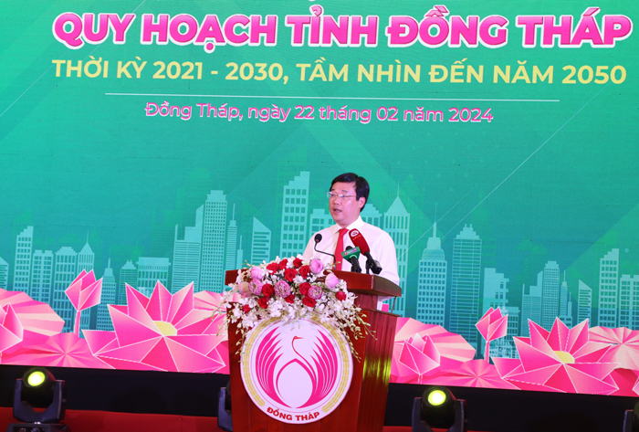 Tại hội nghị, Chủ tịch Ủy ban nhân dân tỉnh nhấn mạnh, Đảng bộ, Chính quyền và Nhân dân tỉnh Đồng Tháp đón nhận Quyết định của Thủ tướng Chính phủ phê duyệt Quy hoạch tỉnh Đồng Tháp thời kỳ 2021 - 2030, tầm nhìn đến năm 2050 trong tâm thế rất vui mừng, phấn khởi trước những thành tựu mà tỉnh đã đạt được trong quá trình xây dựng và phát triển.