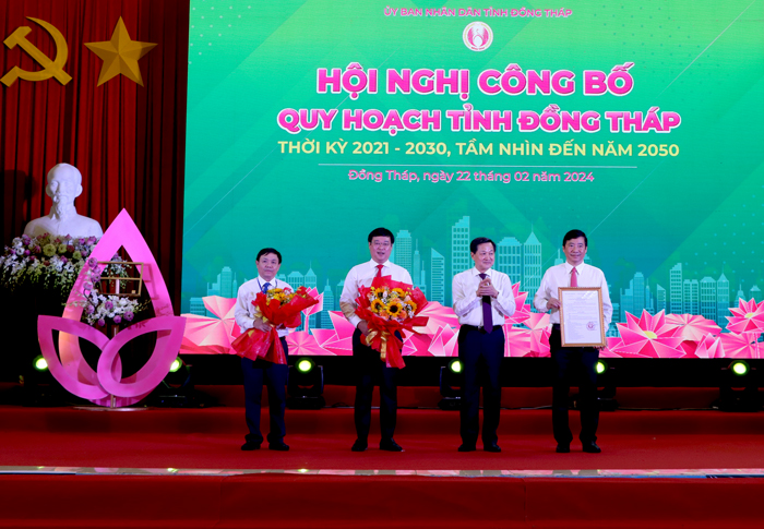 Ngay sau công bố Quyết định của Thủ tướng Chính phủ phê duyệt Quy hoạch tỉnh Đồng Tháp thời kỳ 2021 – 2030, tầm nhìn đến năm 2050, Phó Thủ tướng Lê Minh Khái đã trao quyết định cho lãnh đạo tỉnh Đồng Tháp.