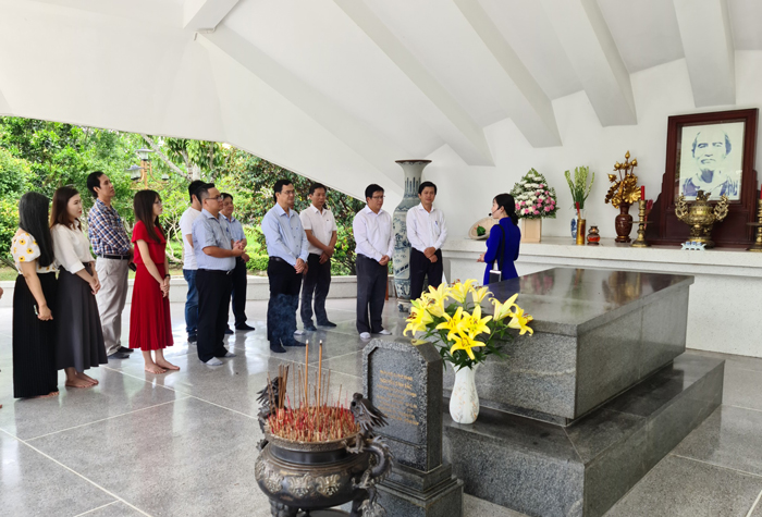 Ông Nguyễn Công Minh – Phó Chánh Văn phòng Ủy ban nhân dân tỉnh cùng đoàn công tác Ban Biên tập Cổng Thông tin điện tử tỉnh Bình Dương viếng mộ Cụ Phó bảng Nguyễn Sinh Sắc