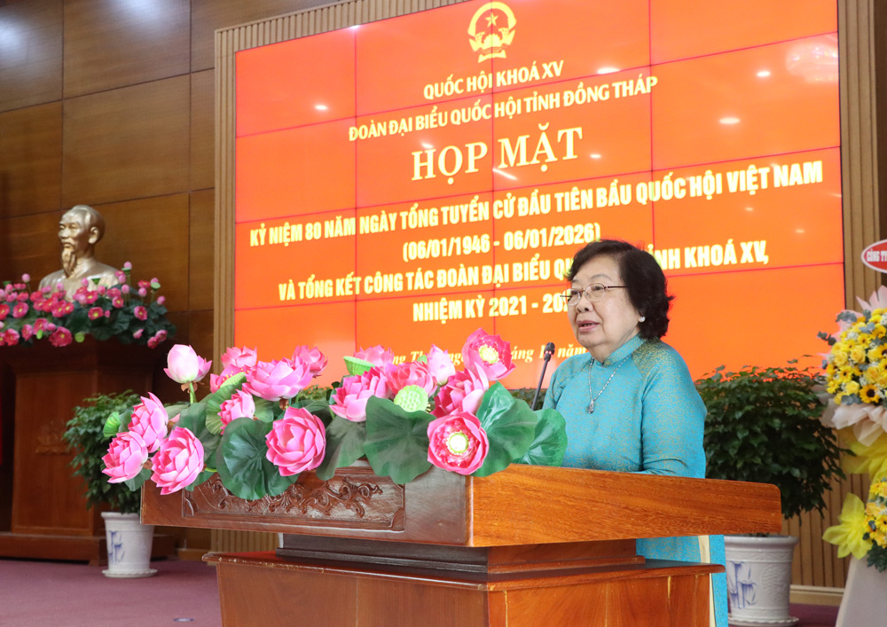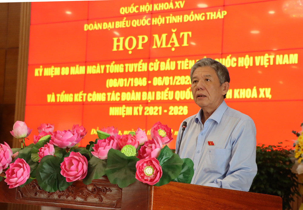 Ôn lại chặng đường lịch sử hình thành và phát triển của Quốc hội Việt Nam, tạo điều kiện để đại biểu Quốc hội tỉnh Đồng Tháp các khóa có dịp gặp gỡ, thăm hỏi và chia sẻ những kinh nghiệm quý báu trong quá trình hoạt động, sáng ngày 26/12, tại hội trường Sen Hồng, Đoàn đại biểu Quốc hội tỉnh Đồng Tháp tổ chức buổi họp mặt kỷ niệm 80 năm Ngày Tổng tuyển cử đầu tiên bầu Quốc hội Việt Nam và tổng kết nhiệm kỳ của Đoàn đại biểu Quốc hội tỉnh khóa XV.