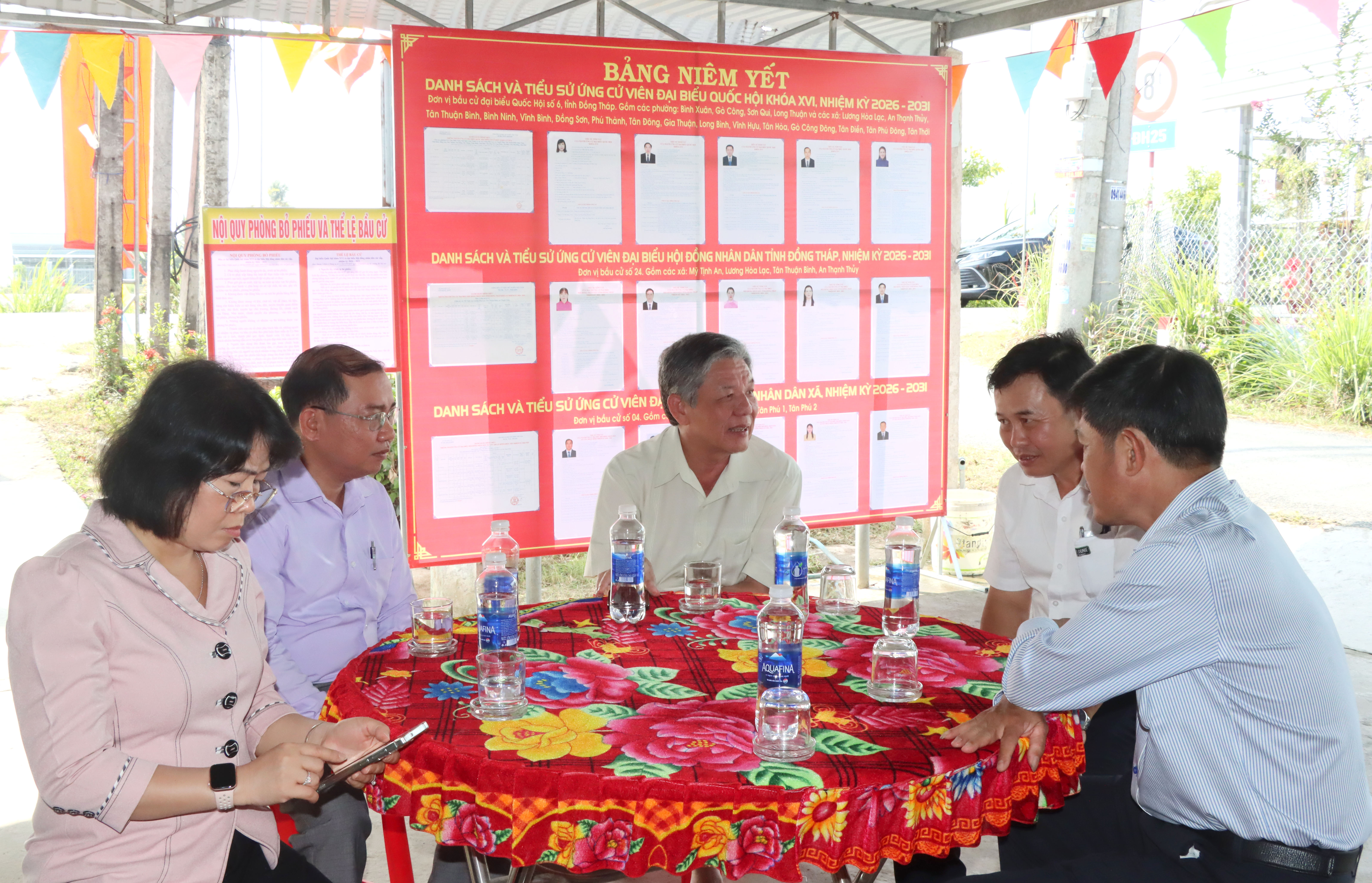 Bí thư Tỉnh ủy Ngô Chí Cường trao đổi với lãnh đạo xã Tân Thuận Bình về công tác chuẩn bị bầu cử tại khu vực bỏ phiếu số 15, ấp Tân Phú 2 , xã Tân Thuận Bình