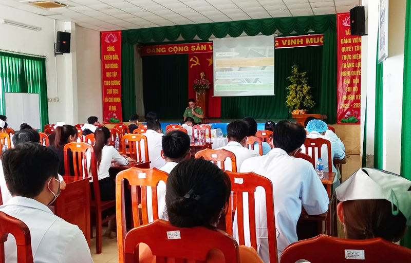 Chi đoàn An ninh nhân dân tuyên truyền, phổ biến pháp luật về an ninh mạng, cảnh báo các phương thức, thủ đoạn lợi dụng không gian mạng xâm phạm an ninh, trật tự như: lừa đảo làm nhiệm vụ qua app, tuyển cộng tác viên online; Lừa đảo chiếm quyền kiểm soát Sim điện thoại; Lừa đảo vay tiền; Lừa đảo hẹn hò online; Chiếm quyền sử dụng tài khoản Zalo, Facebook…Đồng thời hướng dẫn cách thức phòng tránh giúp cán bộ Y tế, người lao động trang bị thêm nhiều kiến thức và nâng cao nhận thức về tội phạm. Khuyến cáo cán bộ Y tế, người lao động không tham gia vào các hoạt động vi phạm pháp luật trên không gian mạng, không mua bán, trao đổi tài khoản ngân hàng, không sử dụng Sim rác, không dùng tài khoản mạng xã hội tham gia các Hội, nhóm tham gia đánh bạc, tổ chức đánh bạc vi phạm pháp luật, chống phá Cách mạng, Đảng và Nhà nước… Góp phần phòng ngừa, phát hiện tố giác tội phạm mạng, tội phạm sử dụng công nghệ cao.