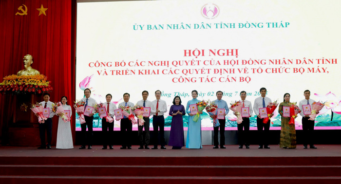 Chiều ngày 02/7, tại Hội trường Ấp Bắc, Ủy ban nhân dân tỉnh Đồng Tháp tổ chức Hội nghị công bố các Nghị quyết của Hội đồng nhân dân tỉnh và triển khai các Quyết định về tổ chức bộ máy, công tác cán bộ.