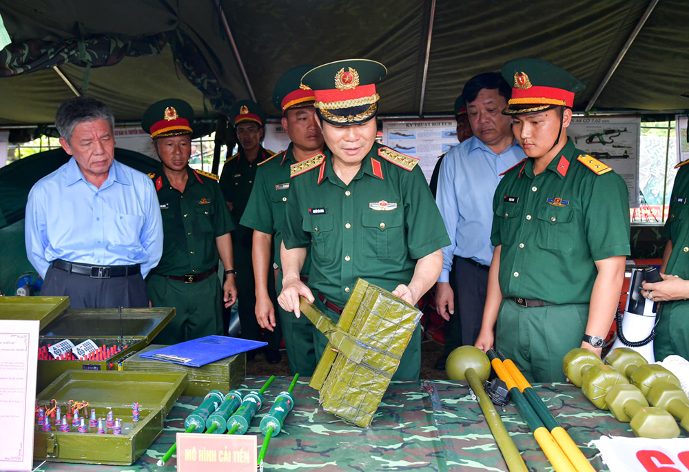 Phát biểu tại buổi lễ, Đại tướng Nguyễn Tân Cương yêu cầu lực lượng vũ trang tỉnh thường xuyên xây dựng bản lĩnh chính trị, lòng tin và ý chí quyết tâm cho cán bộ, chiến sĩ; tổ chức tập huấn, bồi dưỡng, rèn luyện nâng cao chất lượng đội ngũ cán bộ về mọi mặt. Đồng thời, chú trọng huấn luyện tại chức, nâng cao trình độ chuyên môn, nghiệp vụ cho đội ngũ chỉ huy và cơ quan.