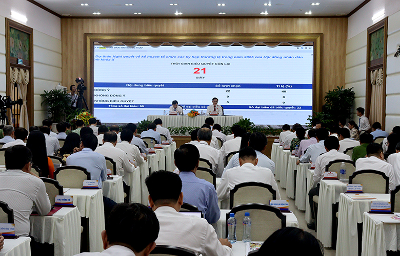 Nhằm đảm bảo thực hiện đúng quy định pháp luật hiện hành, tạo sự chủ động cho các đơn vị có liên quan chuẩn bị tốt nội dung các kỳ họp thường lệ của Hội đồng nhân dân (HĐND) Tỉnh năm 2025, góp phần không ngừng nâng cao hiệu quả, chất lượng kỳ họp HĐND Tỉnh, tại Kỳ họp thứ chín, HĐND tỉnh Đồng Tháp thông qua Nghị quyết về Kế hoạch tổ chức các kỳ họp thường lệ năm 2025.