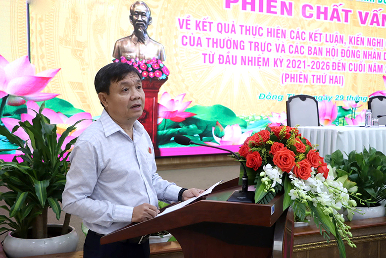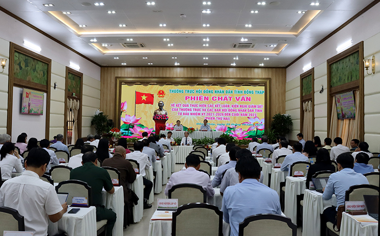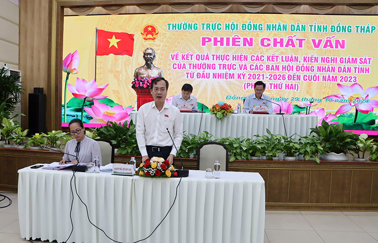 Các đại biểu Hội đồng nhân dân Tỉnh đã chất vấn lãnh đạo Ủy ban nhân dân Tỉnh và Giám đốc các Sở: Tài chính, Y tế, Kế hoạch và Đầu tư tập trung vào 03 nhóm vấn đề: Kết quả thực hiện công tác thu thuế và thu ngân sách nhà nước giai đoạn từ năm 2018 - 2022, định hướng đến năm 2025 trên địa bàn tỉnh Đồng Tháp; Tình hình triển khai, kết quả thực hiện các chính sách hỗ trợ phát triển doanh nghiệp, khởi nghiệp; Công tác xã hội hóa đầu tư nước sạch nông thôn.