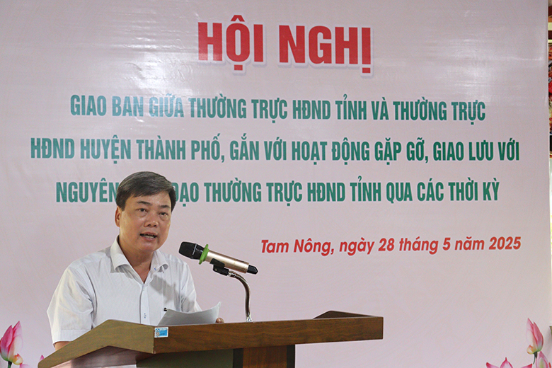 Chiều 28/5, tại Vườn Quốc gia Tràm Chim (huyện Tam Nông), Thường trực HĐND Tỉnh tổ chức hội nghị giao ban giữa Thường trực, các Ban, đại biểu HĐND tỉnh với Thường trực, các Ban HĐND các huyện, thành phố nhiệm kỳ 2021–2026 và gặp gỡ các đồng chí nguyên lãnh đạo Thường trực HĐND tỉnh qua các thời kỳ.