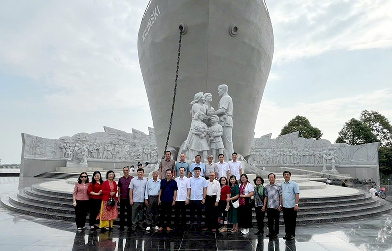 Đoàn chụp ảnh lưu niệm tại tượng đài "Con tàu tập kết ra Bắc" TP Sầm Sơn, tỉnh Thanh Hóa
