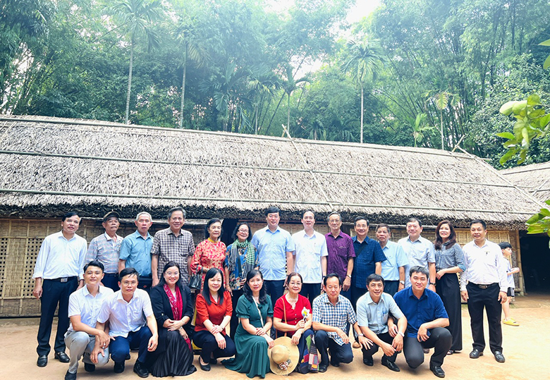 Đoàn chụp ảnh lưu niệm tại Nhà cụ Nguyễn Sinh Sắc (thân sinh Chủ tịch Hồ Chí Minh)