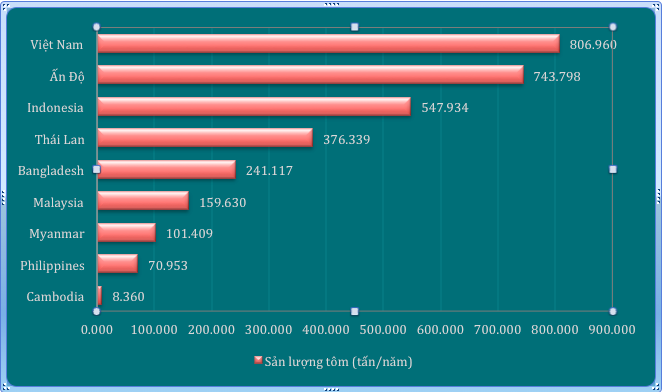 Sản lượng tôm của Việt Nam so với các nước trên thế giới: