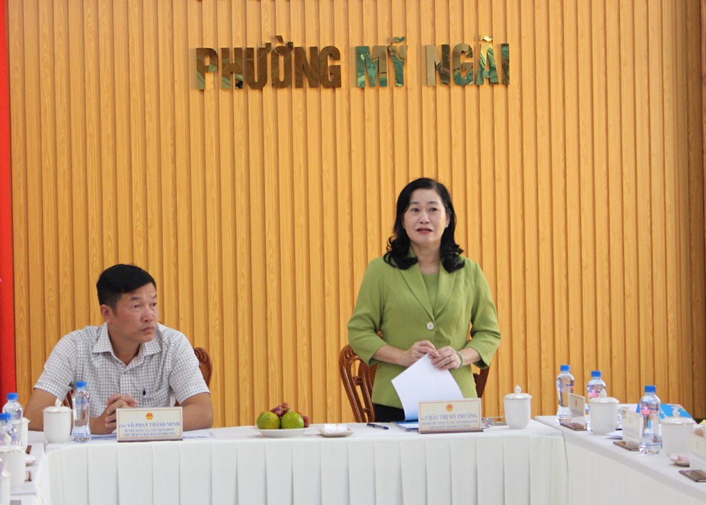Đồng chí Châu Thị Mỹ Phương đánh giá cao sự chuẩn bị chu đáo của Ủy ban bầu cử phường Mỹ Ngãi, đề nghị Ủy ban bầu cử phường tiếp tục triển khai nhiệm vụ công tác bầu cử sắp tới; dự kiến, giới thiệu người ứng cử phải đảm bảo theo quy định; thường xuyên kiểm tra, tháo gỡ khó khăn trong công tác bầu cử.