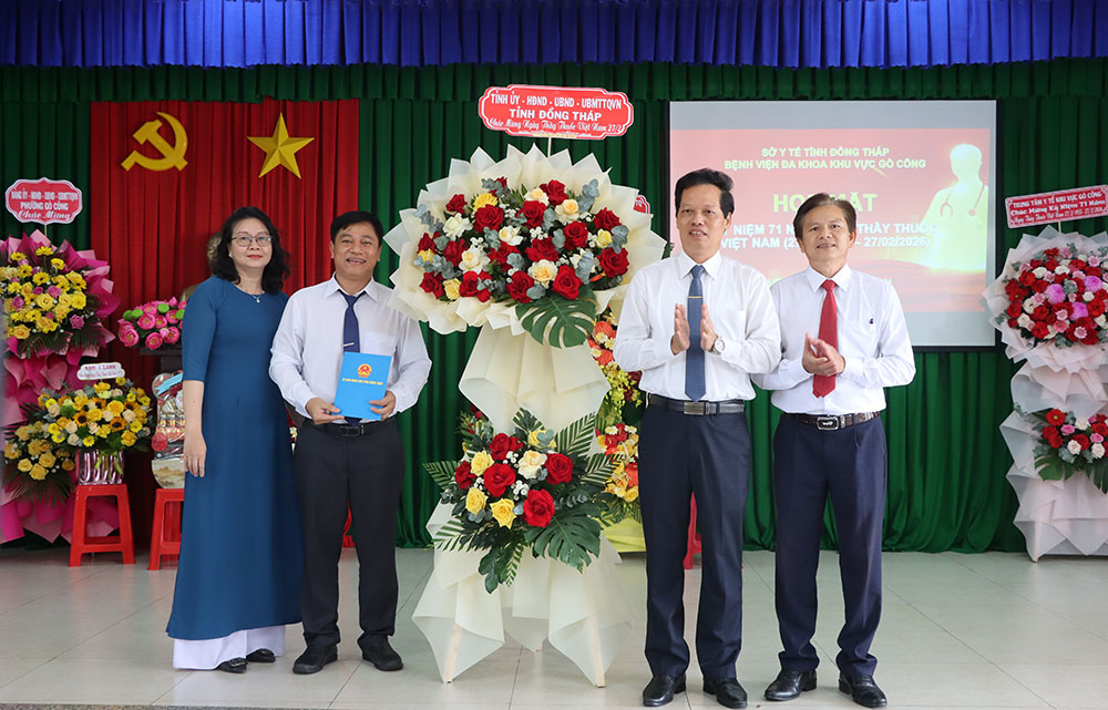 Tại Bệnh viện Đa khoa khu vực Gò Công, Phó Chủ tịch Ủy ban nhân dân tỉnh Nguyễn Thành Diệu nhấn mạnh, Ngày Thầy thuốc Việt Nam (27/02) là dịp để nhận thức sâu sắc hơn những lời dạy của Chủ tịch Hồ Chí Minh đối với ngành Y tế. Quá trình phát triển của Bệnh viện Đa khoa khu vực Gò Công đã có nhiều đóng góp tích cực cho ngành Y tế nói chung và khu vực Gò Công nói riêng trong công tác chăm sóc sức khỏe nhân dân. Để đáp ứng nhu cầu điều trị ngày càng cao, tỉnh sẽ dành kinh phí đầu tư mở rộng bệnh viện, bao gồm cơ sở hạ tầng với trang thiết bị hiện đại.