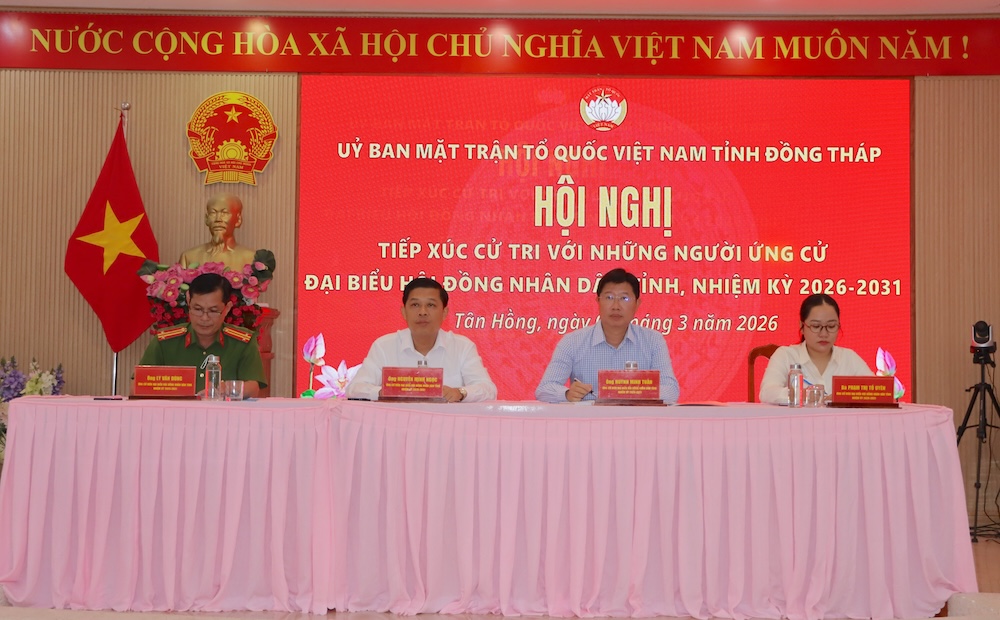 Sáng ngày 06/3, hơn 100 cử tri trên địa bàn xã Tân Hồng (điểm số 1) tham dự buổi tiếp xúc với ứng cử viên đại biểu Hội đồng nhân dân tỉnh Đồng Tháp, đơn vị bầu cử số 1 (các xã: Tân Hồng, Tân Thành, Tân Hộ Cơ, An Phước, Tam Nông). Hội nghị do Uỷ ban Mặt trận Tổ quốc Việt Nam tỉnh Đồng Tháp tổ chức.