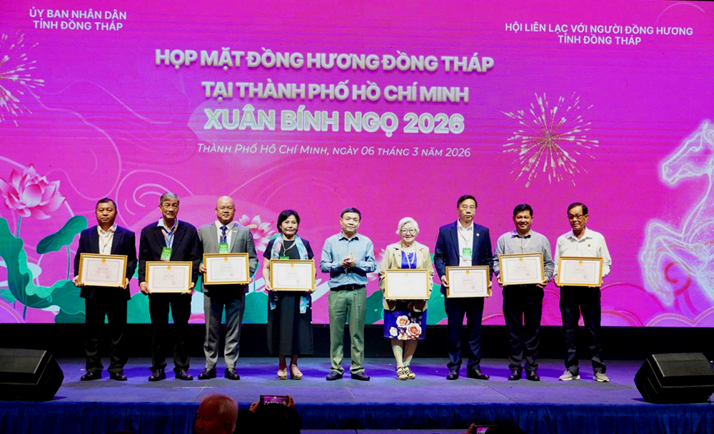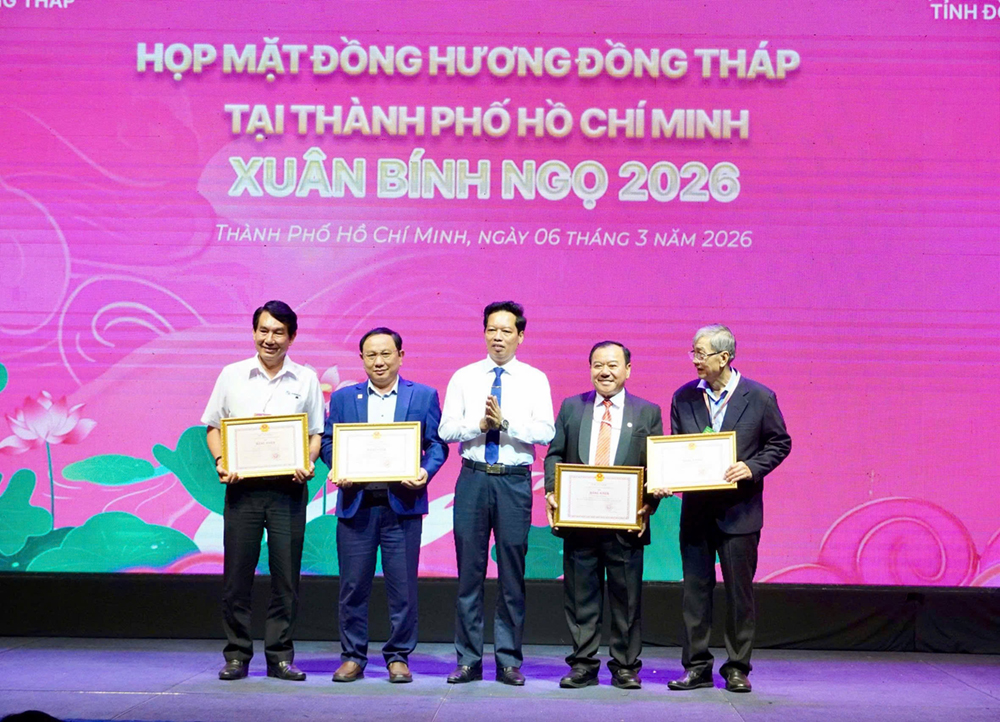 Sáng ngày 06/3, tại Thành phố Hồ Chí Minh, Ủy ban nhân dân tỉnh Đồng Tháp và Hội Liên lạc với người đồng hương tỉnh Đồng Tháp tổ chức Họp mặt đồng hương Đồng Tháp tại Thành phố Hồ Chí Minh Xuân Bính Ngọ 2026 trong không khí rộn ràng, thắm đượm nghĩa tình.