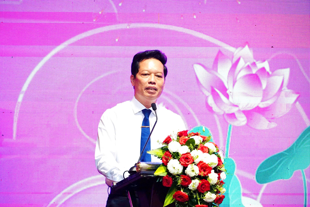 Phó Chủ tịch Ủy ban nhân dân tỉnh Nguyễn Thành Diệu phát biểu tại buổi họp mặt