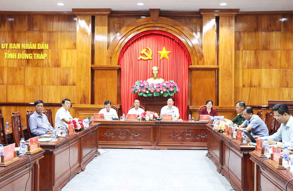 Phó Chủ tịch Ủy ban nhân dân tỉnh Huỳnh Minh Tuấn chủ trì tại điểm cầu tỉnh Đồng Tháp; cùng đại diện lãnh đạo các sở, ban, ngành tỉnh tham dự hội nghị
