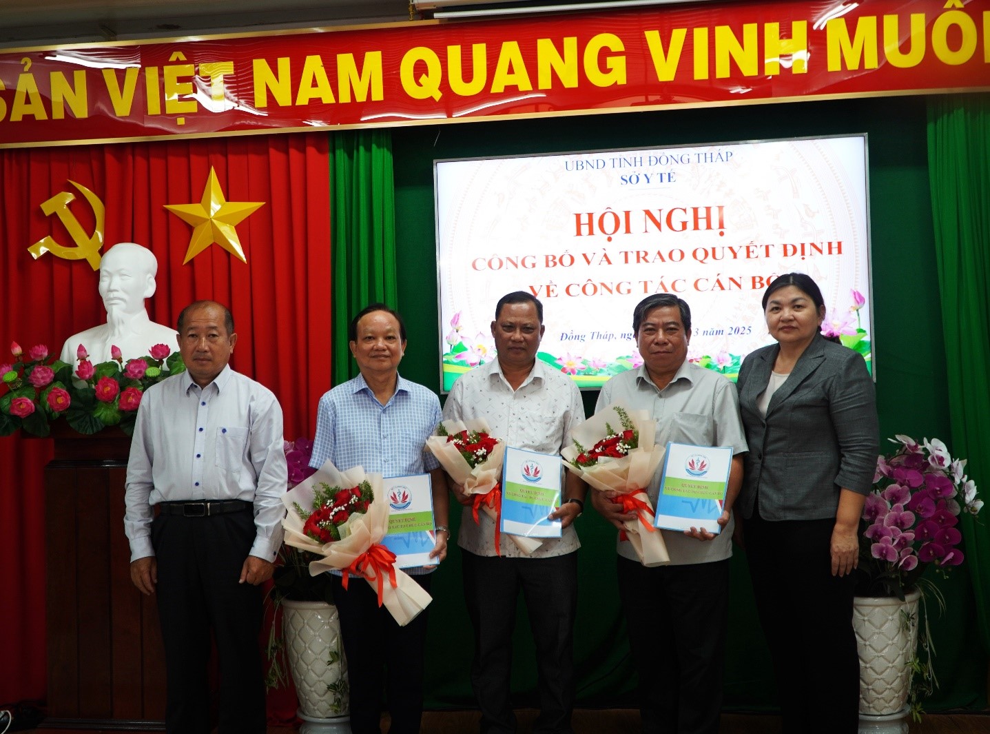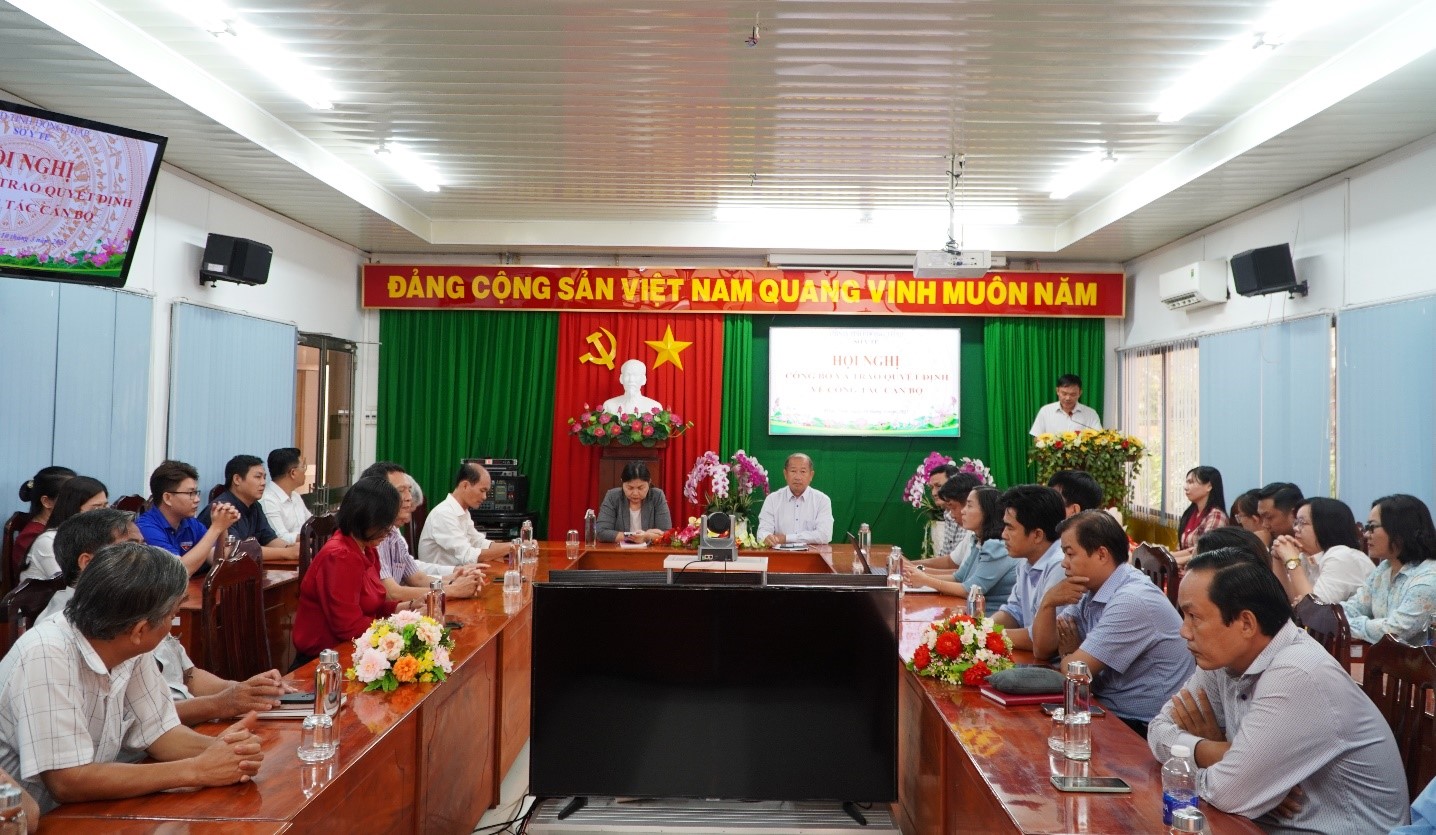 Chiều ngày 11/3/2025, Sở Y tế Đồng Tháp tổ chức Hội nghị công bố quyết định về công tác cán bộ tại các phòng chuyên môn thuộc Sở Y tế. Tham dự có BS.CK2. Đoàn Tấn Bửu, Tỉnh ủy viên, Giám đốc Sở Y tế; DS.CK1. Lâm Thị Ngọc Kim, Phó Giám đốc Sở Y tế; cùng dự có các nguyên lãnh đạo các phòng chuyên môn Sở Lao động, Thương binh và Xã hội; lãnh đạo Trung tâm Bảo trợ xã hội tổng hợp; lãnh đạo và công chức các phòng chuyên môn Sở Y tế sau sắp xếp.