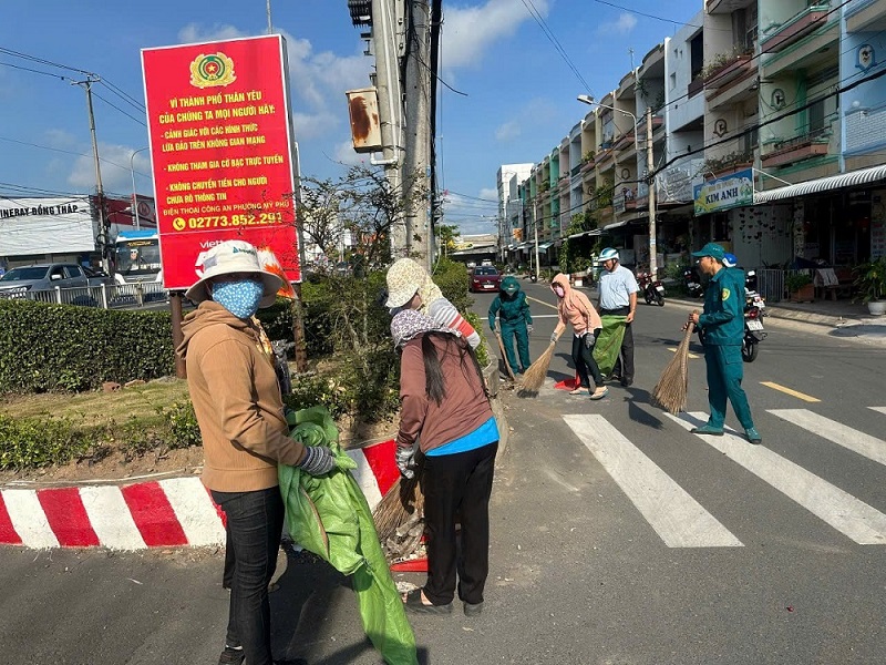 Hình ảnh vệ sinh tuyến đường Nguyễn Huệ khóm Mỹ Thượng