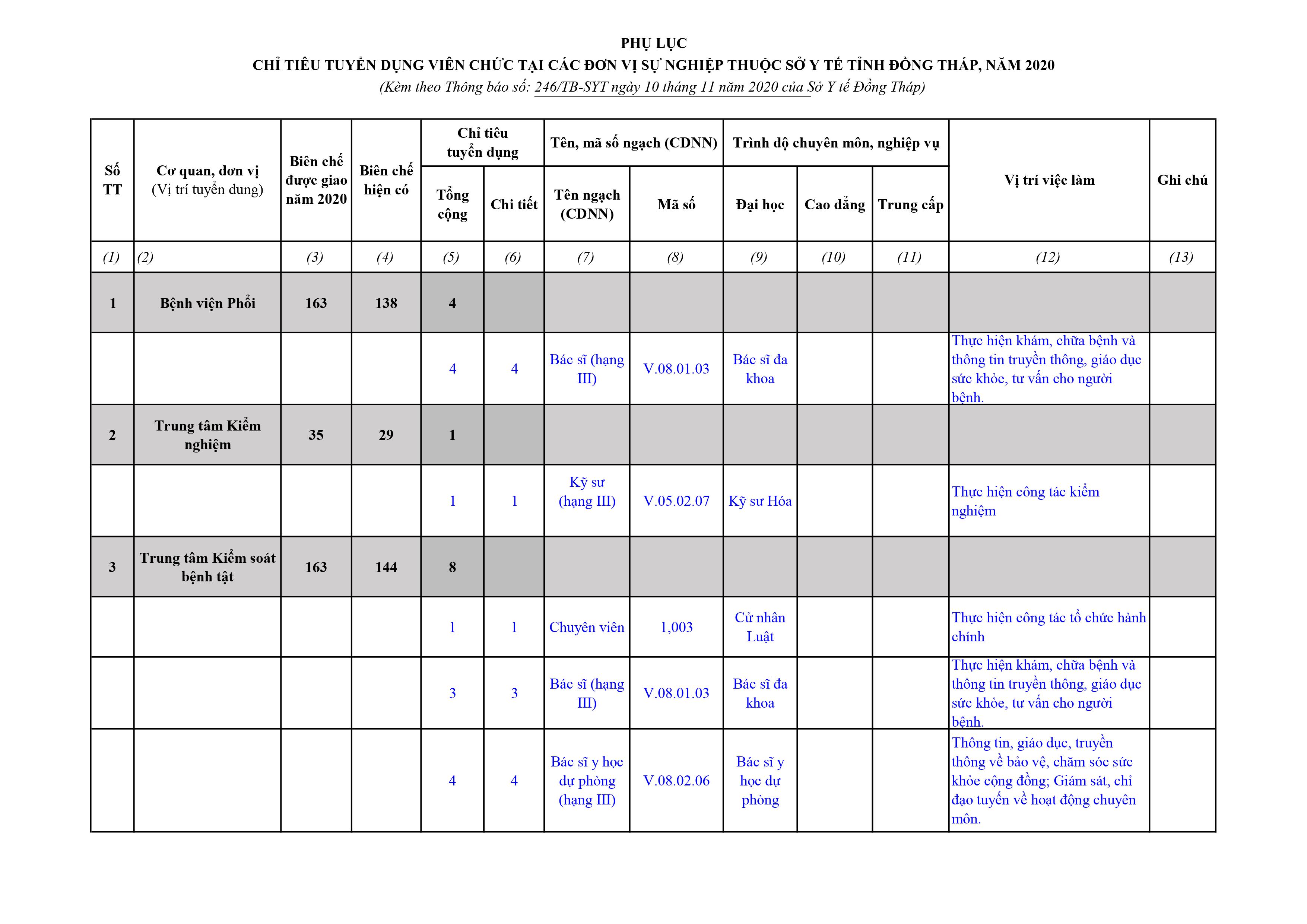 [10/11/2020] Thông báo tuyển dụng viên chức ngành Y tế tỉnh Đồng Tháp, năm 2020 (đối tượng Bác sĩ đa khoa, Bác sĩ Răng - Hàm - Mặt, Bác sĩ Y học Dự phòng, Kỹ sư và Chuyên viên)