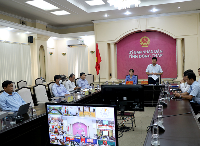 Chủ tịch Uỷ ban nhân dân tỉnh Phạm Thiện Nghĩa phát biểu từ điểm cầu tỉnh Đồng Tháp
