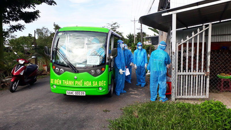 Thành phố Sa Đéc đưa xe điện du lịch hỗ trợ thực hiện xét nghiệm SARS-COVI-2