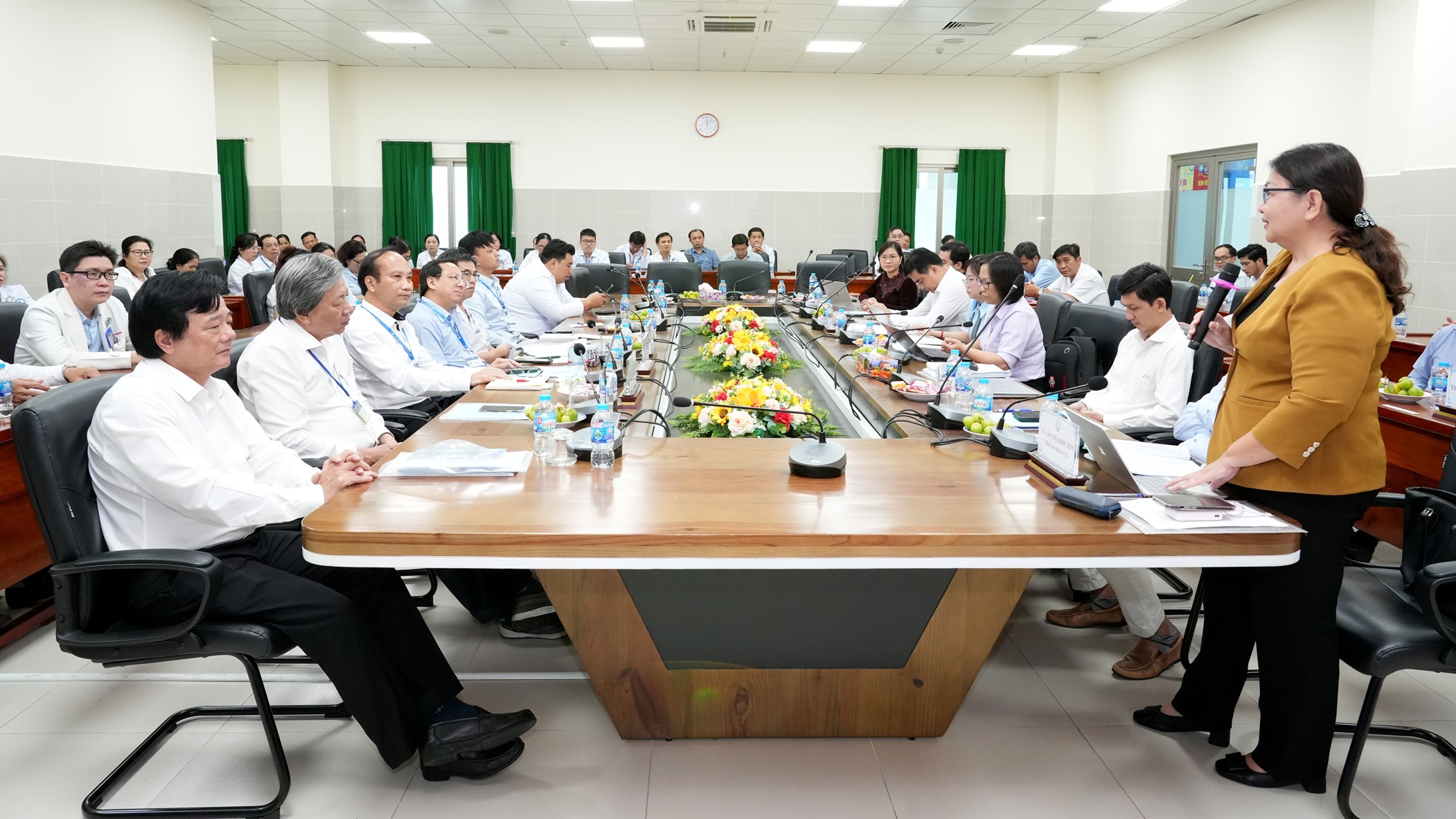 Đoàn kiểm tra do Bà Lâm Thị Ngọc Kim, Phó Giám đốc Sở Y tế, làm Trưởng đoàn, cùng các thành viên trong Đoàn. Tiếp Đoàn có GS.TS.BS Tạ Văn Trầm, Giám đốc bệnh viện, cùng các Phó Giám đốc (BSCK2 Lê Thanh Bình, BSCK2 Võ Giáp Hùng, TS.BS Đỗ Quang Thành) và đại diện các khoa, phòng trong bệnh viện.