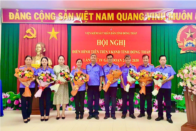Đồng chí Ngô Văn Lượng ( người đứng bìa phải) cùng các các nhân điển hình tiên tiến của ngành kiểm sát Đồng Tháp giai đoạn 2020-2024