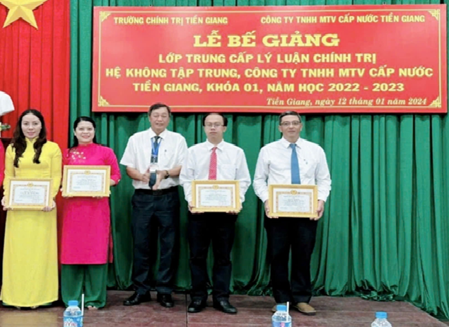 Đồng chí Vương nhận Giấy khen tại Lễ bế giảng Lớp trung cấp lý luận chính trị.