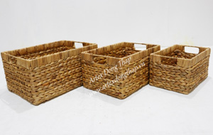 Bộ 3 sọt chữ nhật lục bình đan mắt na