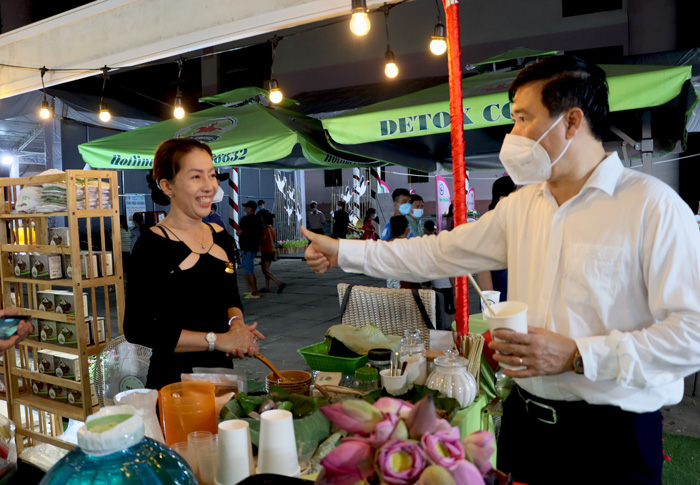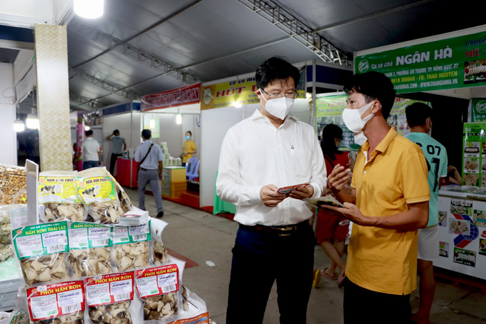Không chỉ thăm các gian hàng, lãnh đạo Ủy ban nhân dân tỉnh còn góp ý