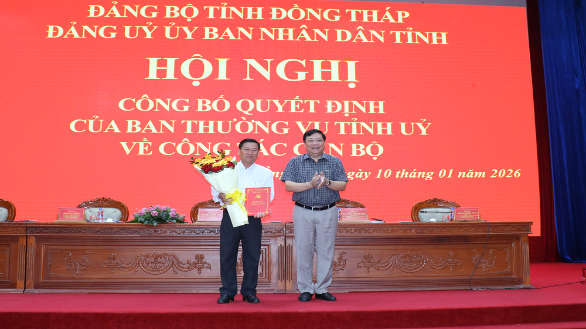Sáng ngày 10/01/2026, Đảng ủy Ủy ban nhân dân tỉnh Đồng Tháp tổ chức Hội nghị công bố các quyết định của Ban Thường vụ Tỉnh ủy về công tác cán bộ.