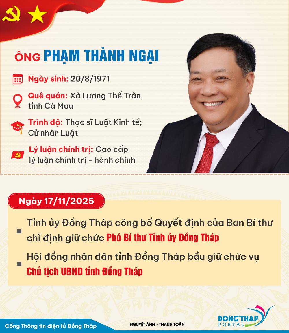 Tại kỳ họp thứ 5 Hội đồng nhân dân tỉnh Đồng Tháp khóa X, nhiệm kỳ 2021 – 2026, ông Phạm Thành Ngại – Phó Bí thư Tỉnh ủy Đồng Tháp được bầu giữ chức Chủ tịch Ủy ban nhân dân tỉnh Đồng Tháp.